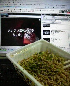 ぺヤング食べながら